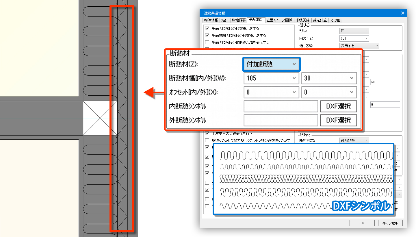 平面入力において、内断熱と外断熱を同時に表現できる「付加断熱」が追加されました。