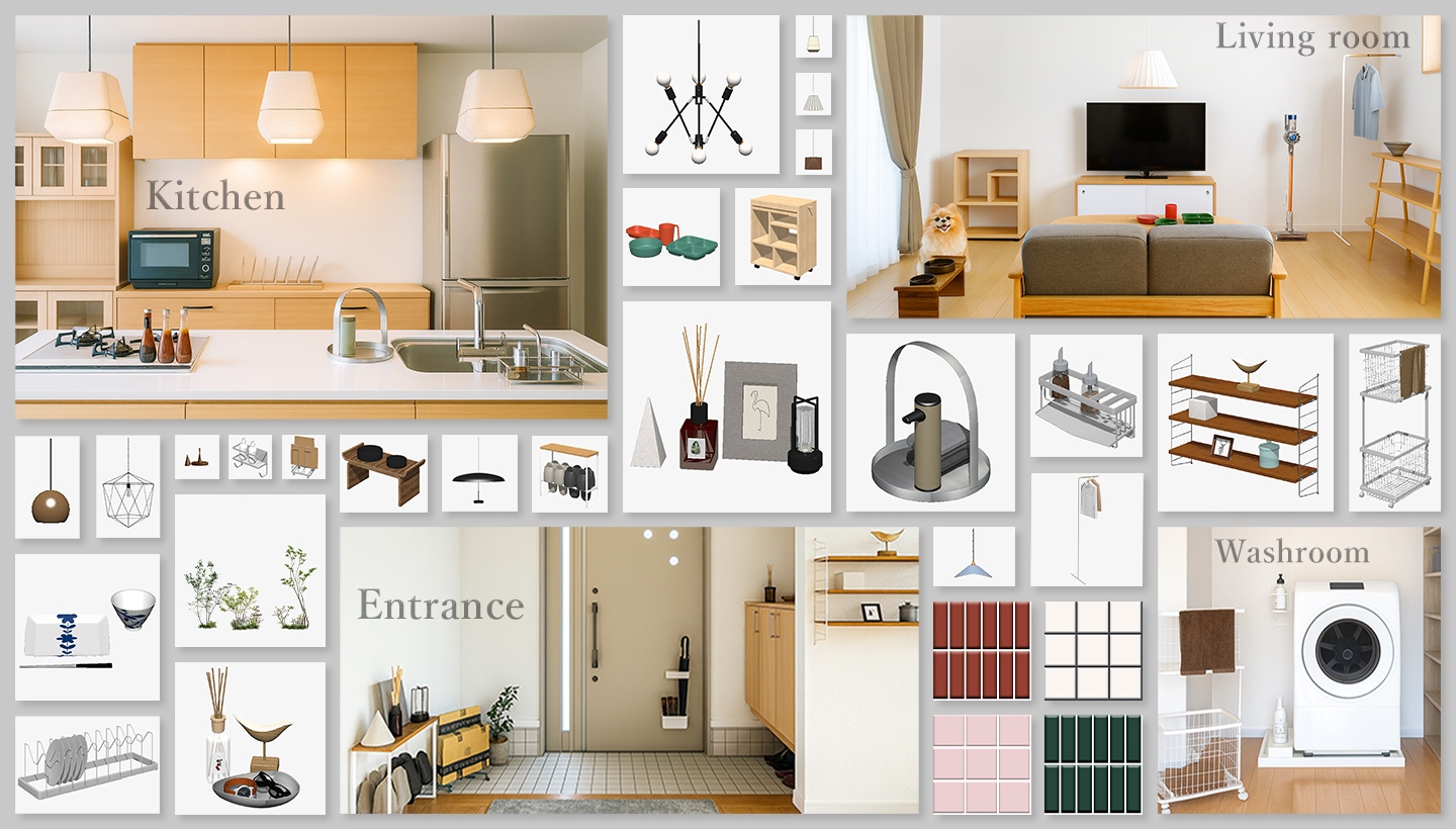 様々な提案シーンに溶け込む、ワンクリックで簡単に配置できるインテリア小物のセット部材を追加しました。手軽な空間演出により作業の手間を減らしつつ、多彩な組み合わせでビジュアル面にもこだわりを持たせた、高品質なパース制作をサポートします。 ※システム更新にて随時配信予定です。
